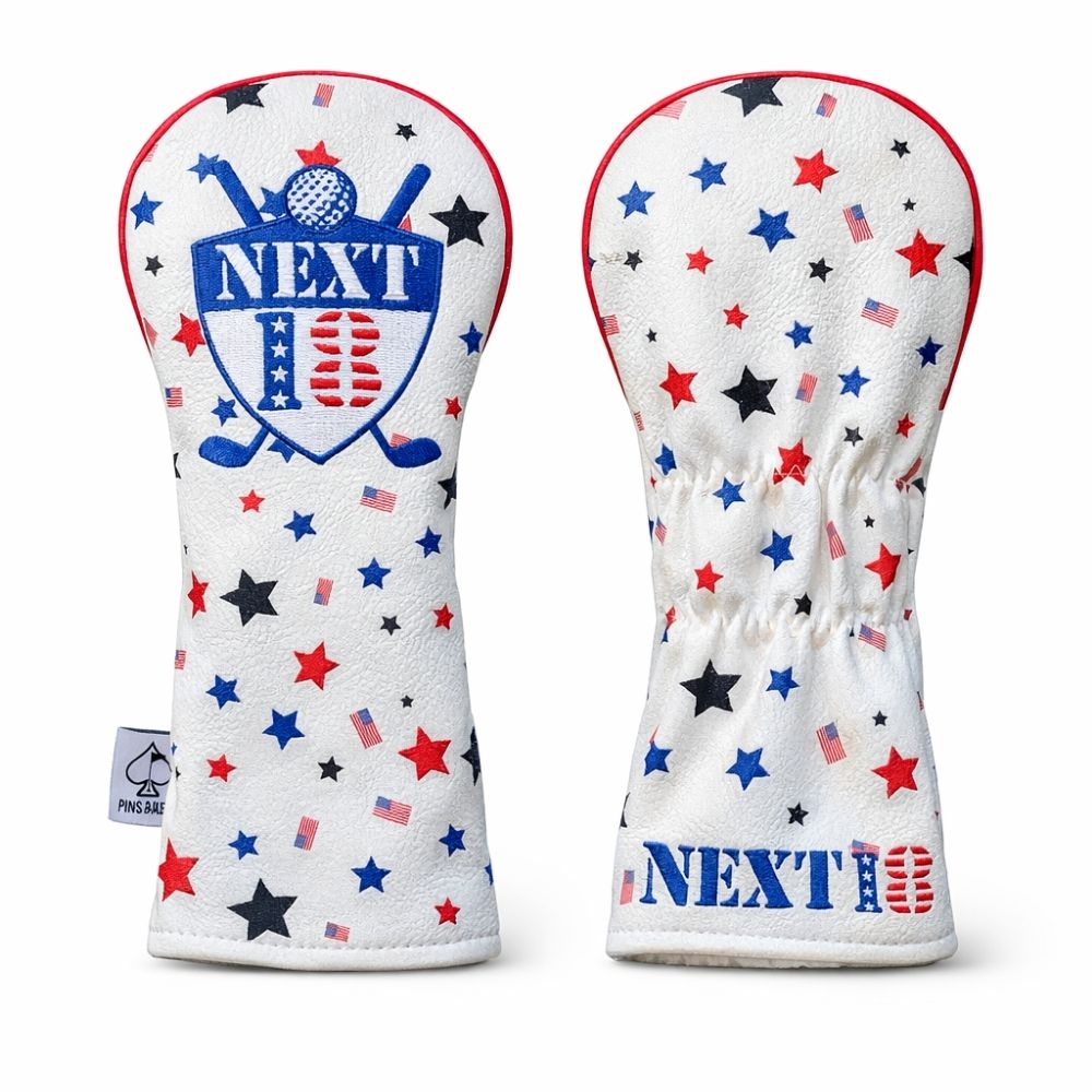 This custom headcover features the patriotic Next18 design with embroidered logo, stars, and flag details, giving your bag a clean, professional look while honoring the mission of supporting veterans and first responders through the game of golf.